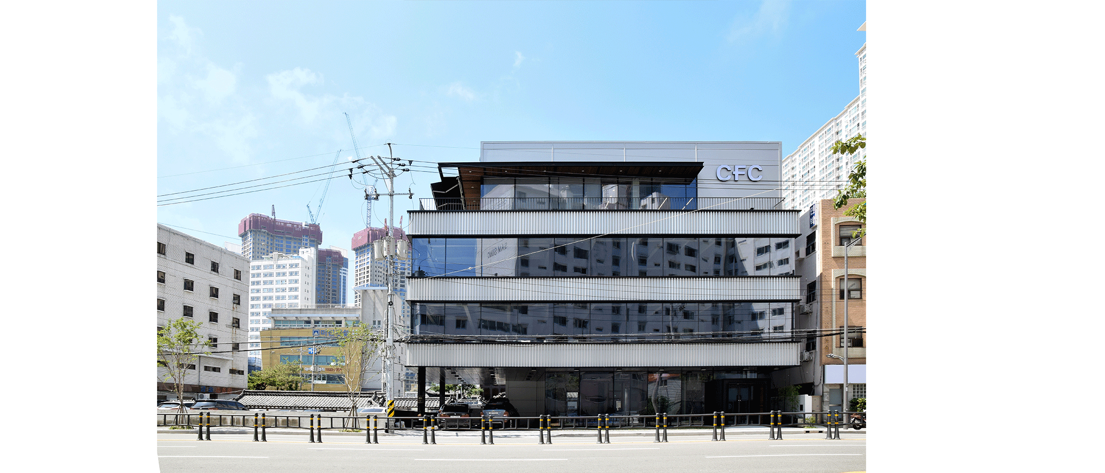 위치 부산광역시 해운대구 중동 용도 제1종 근린시설 대지면적 383.00㎡ 건축면적 305.69㎡ 연면적 992.62㎡ 용적률 259.17% 건폐율 79.81% 구조 일반철골구조 규모 지상 4층 준공연도 2018 Branding Perspective Render 오오 치과빌딩 해운대 온천센터 주차장 [White Wavelength]